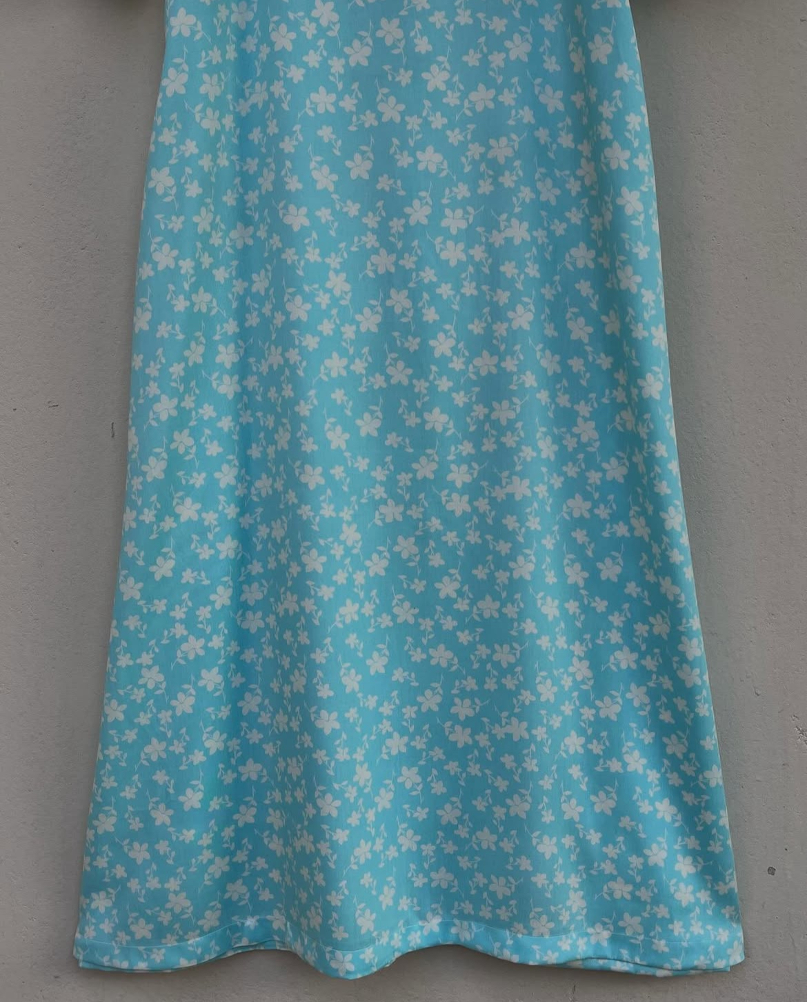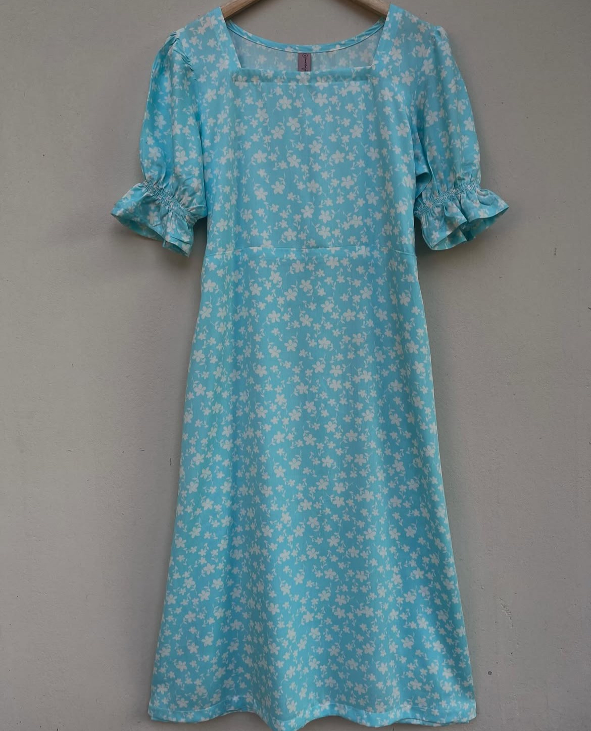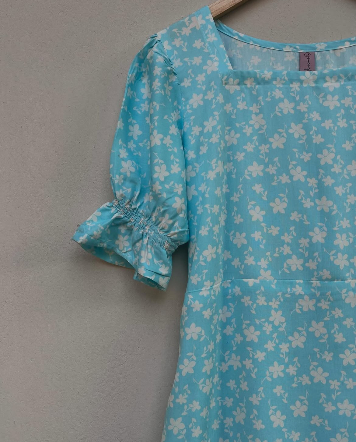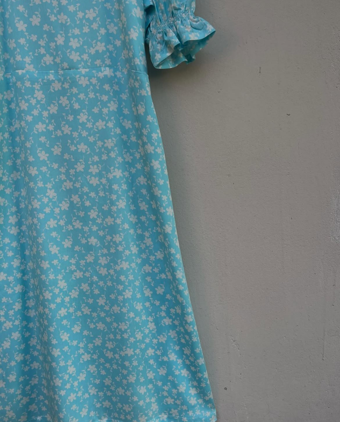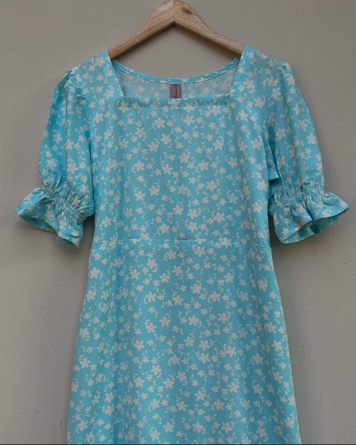 Make a vibrant statement in our electric blue floral dress. This eye-catching piece features a modern square neckline, charming ruffled puff sleeves, and a fresh all-over daisy print. It’s the perfect dress for standing out and celebrating the joy of summer.