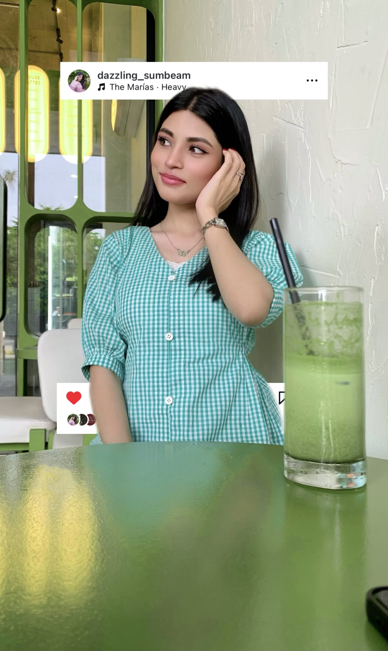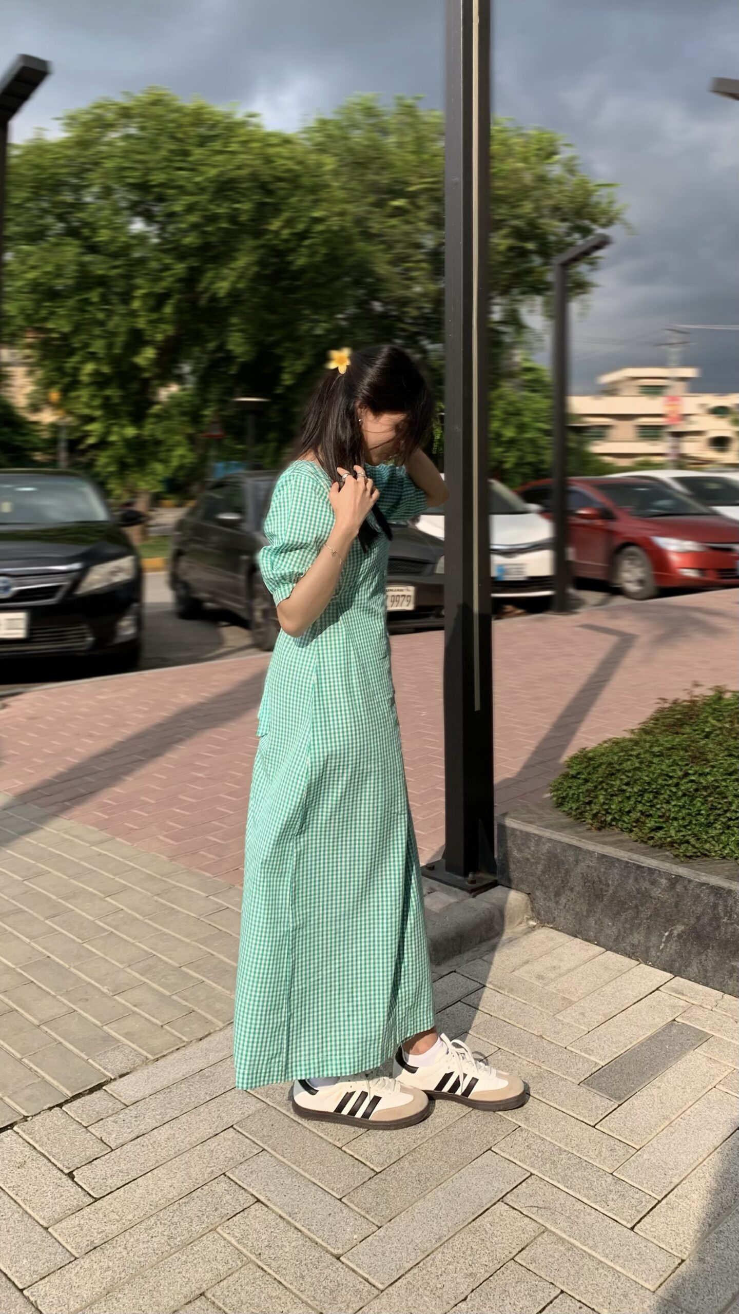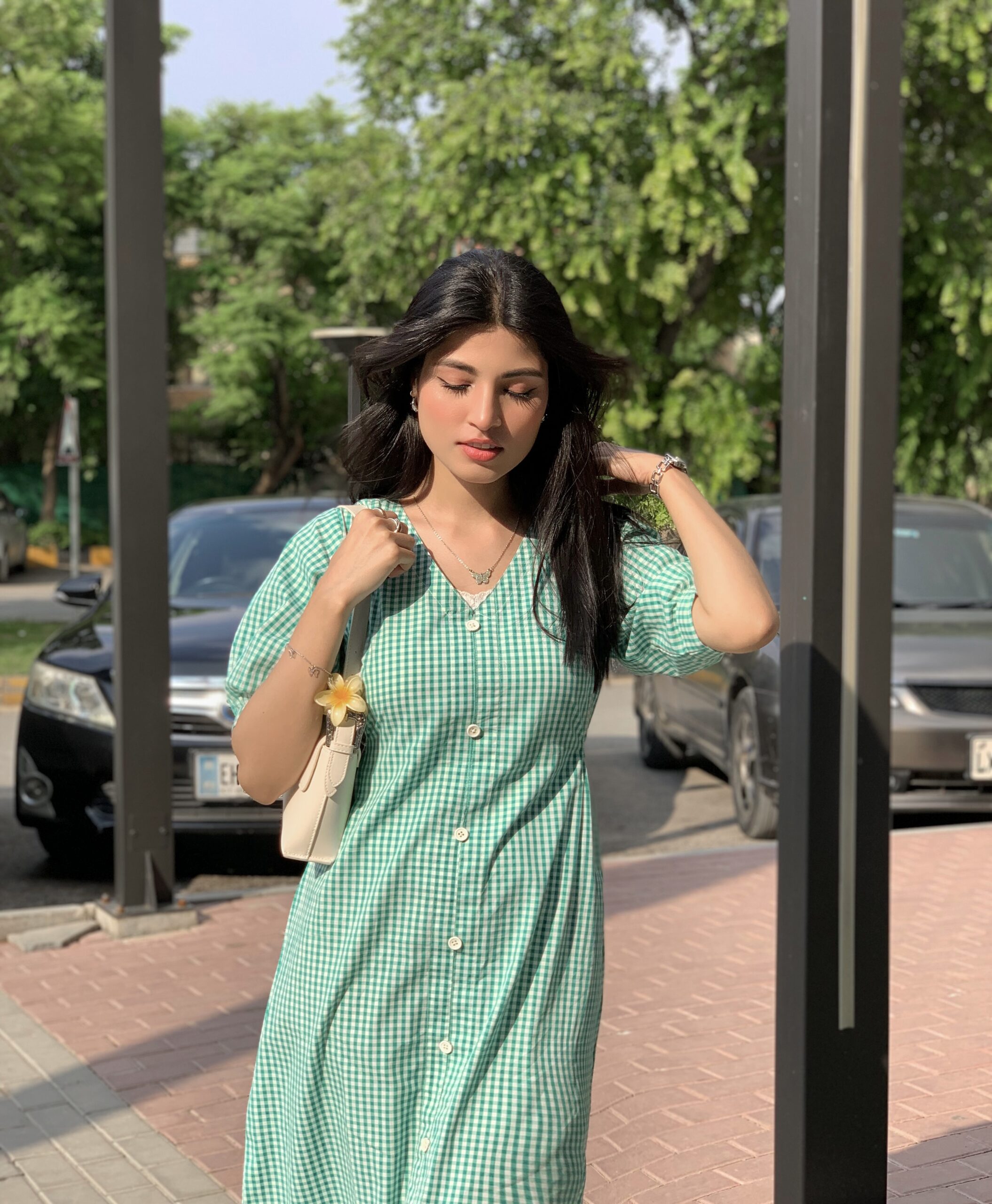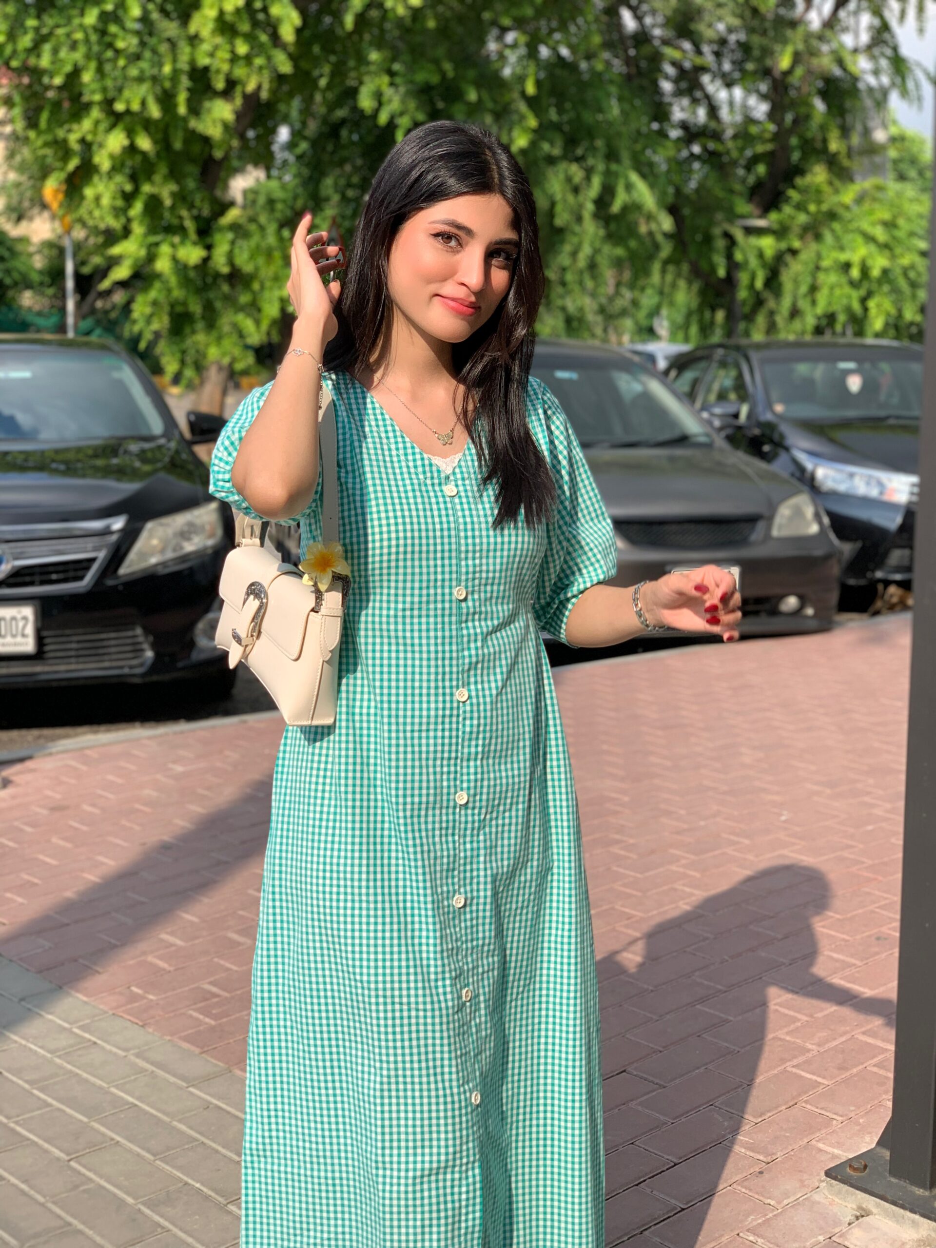 Green Check Print Dress