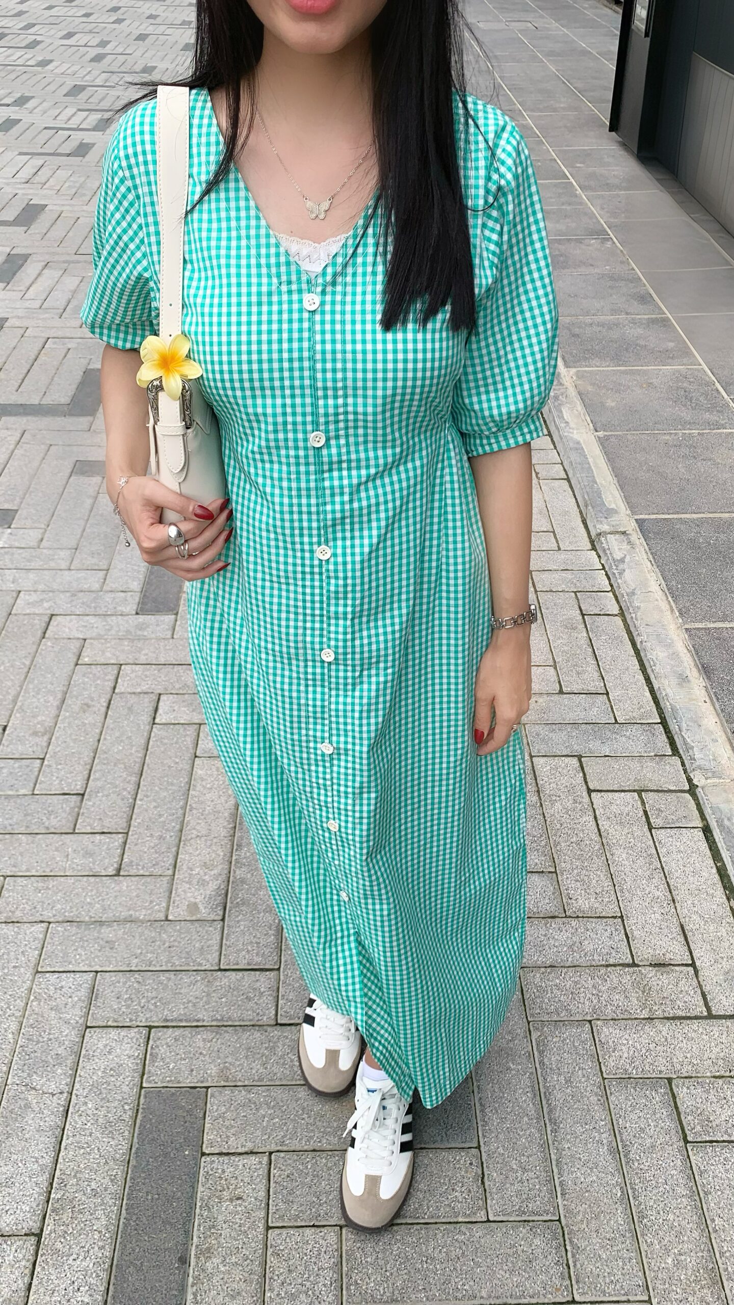 This charming green check print dress features a delightful green and white gingham pattern, perfect for a playful yet elegant look. Crafted from lightweight fabric, it includes puffed long sleeves and a ruffled hem for a flattering silhouette. Ideal for casual outings or summer gatherings, pair it with sandals for a fresh, stylish vibe.