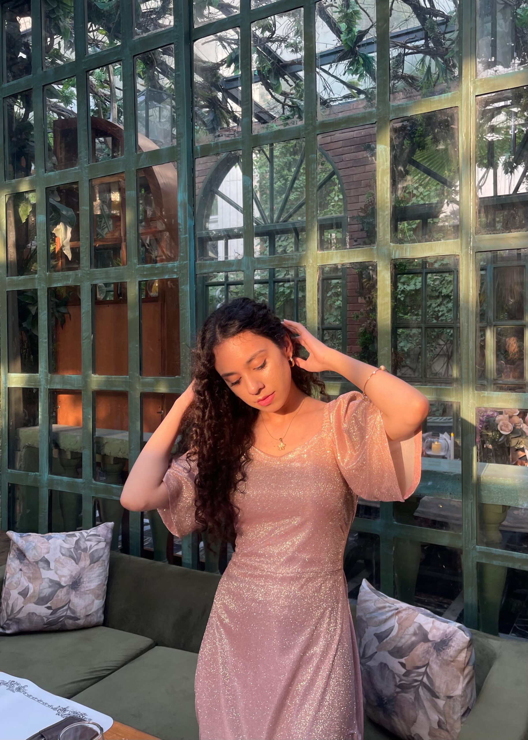 Shine bright at your next event in our enchanting Blue Moonlight Party Dress. This stunning piece is crafted from a shimmering fabric that sparkles from every angle. Featuring elegant flutter sleeves and a graceful A-line silhouette, this dress is your perfect choice for a magical evening.