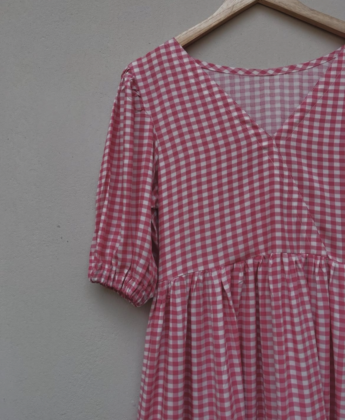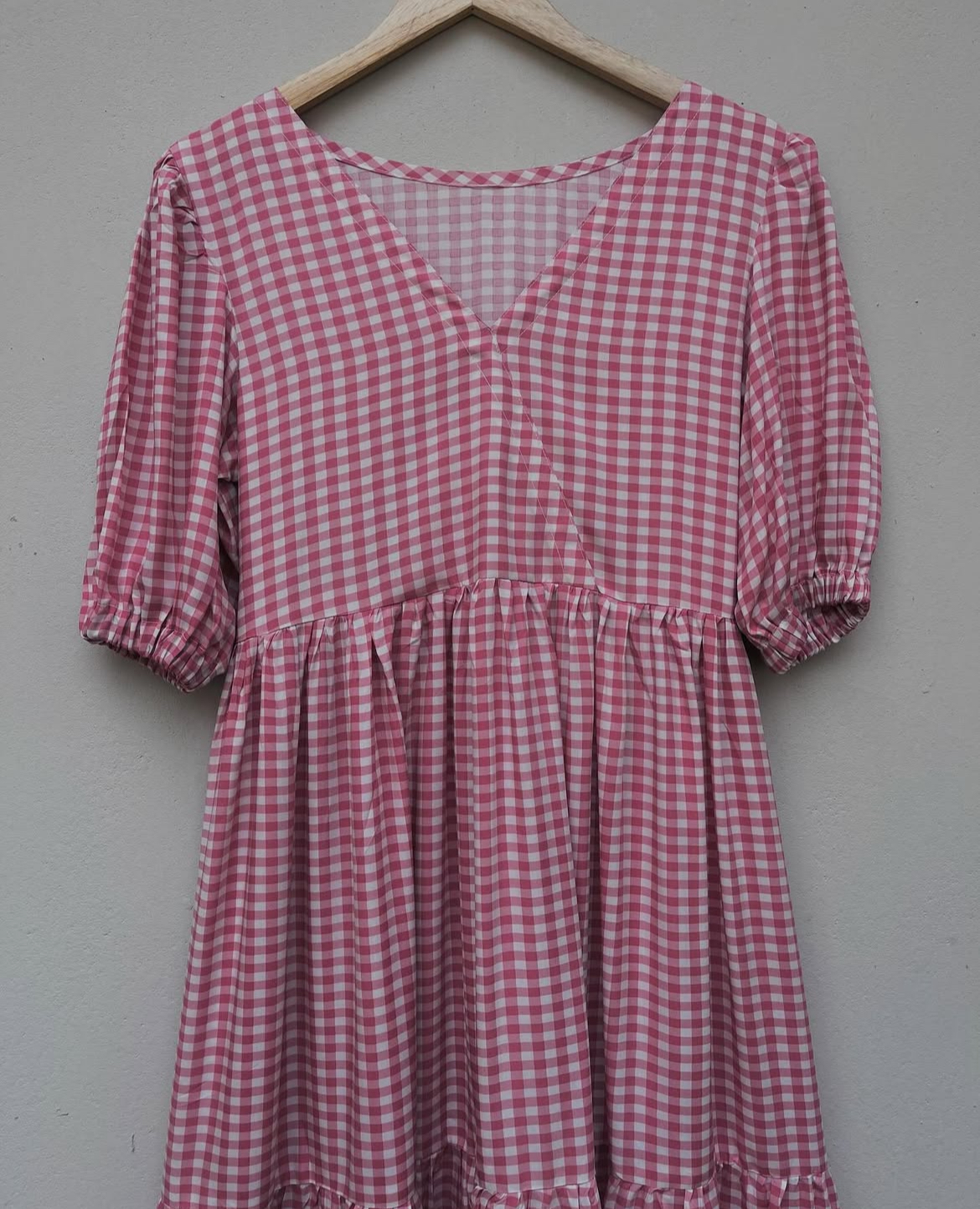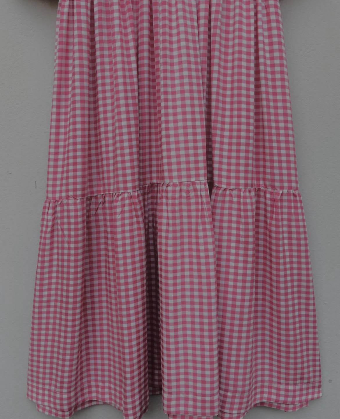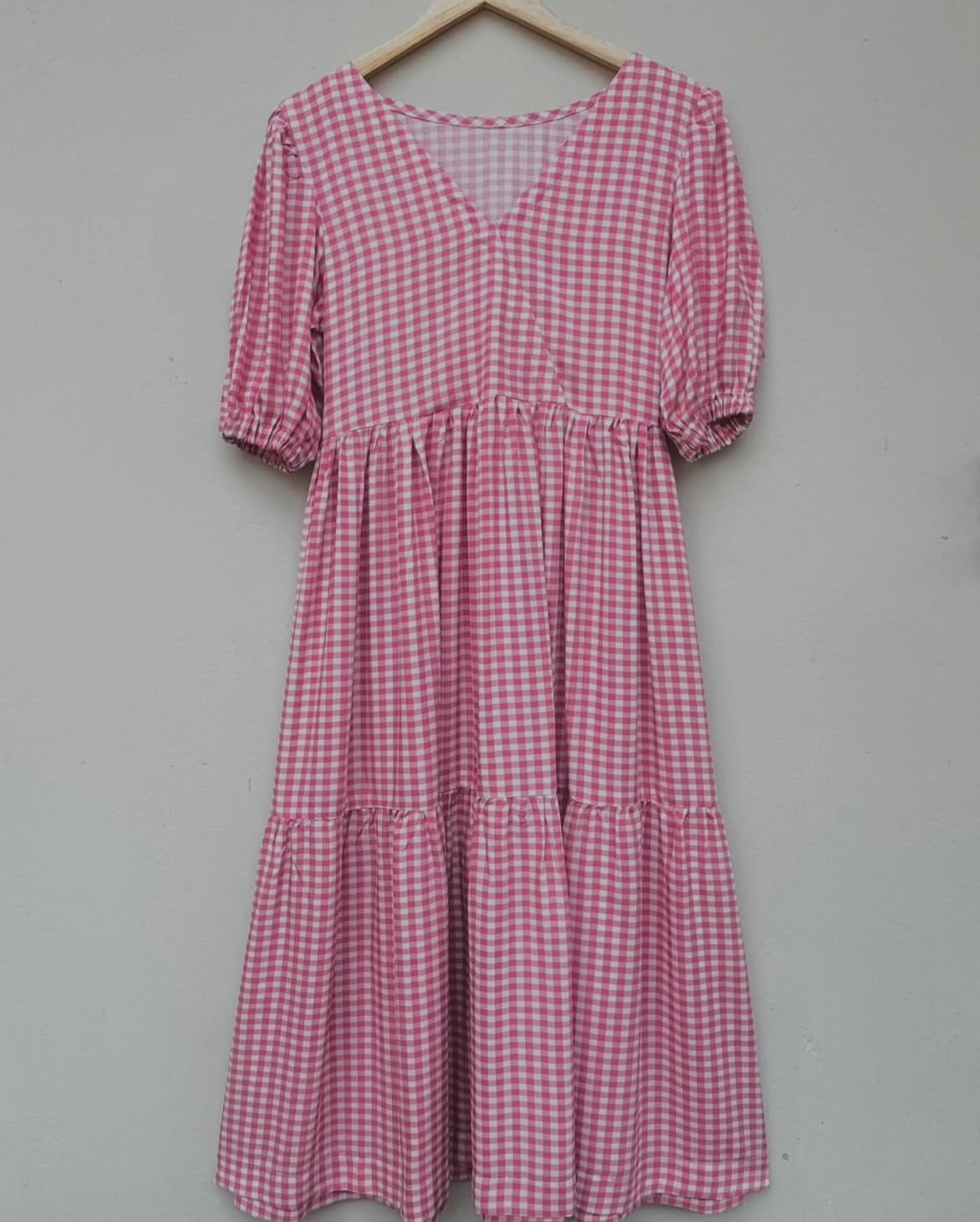 Live your countryside dream in our charming red gingham dress. This lovely piece features a timeless check pattern, a flattering V-neck, and a romantic tiered silhouette. With its comfortable puff sleeves and easy-going fit, it's the perfect one-and-done outfit for sunny days and weekend adventures.